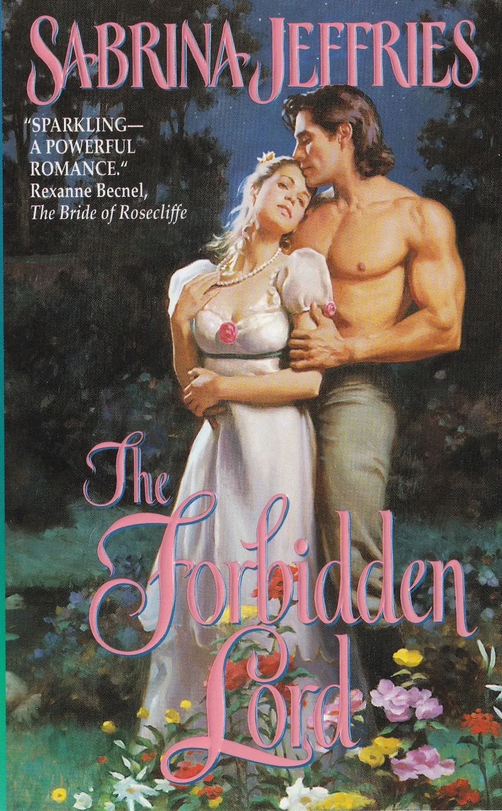 So when he drove his tongue deeply, she tangled her own with it, then went further, slipping her tongue between his open lips to explore the warm, silken dangers of his mouth. His kiss grew almost brutal, as if he couldn’t get enough of her. Over and over he devoured her mouth, and when that no longer seemed to satisfy him, he stamped hard, possessive kisses along her cheek and down her neck. His rough skin rasped against her, and his musky scent mingled with the flowery perfumes dancing in the garden air.