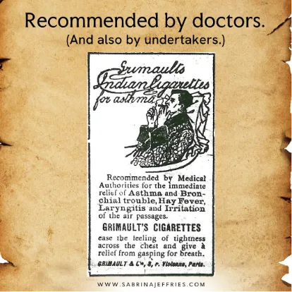 As part of my research for a novella, I had to learn something about how asthma was treated in the Regency. First, doctors had to rule out consumption, the common cold, flu, hay fever (what we’d now deem allergies to pollen, etc.), and other pulmonary possibilities. Once they determined that the illness was asthma (yes, humans have known about asthma for a very long time), there were the usual quack remedies, like inflating the lungs with a bellows or breathing in the fumes of hydrocyanic acid (“Here’s a dose of cyanide for your asthma, Honey!”). But breathing the smoke of burning thorn-apple leaves was considered the most effective treatment, and since that contained anticholinergic properties, it operated much like the drugs used to treat a variety of respiratory issues do now. So, our ancestors weren’t always wrong about medical science!